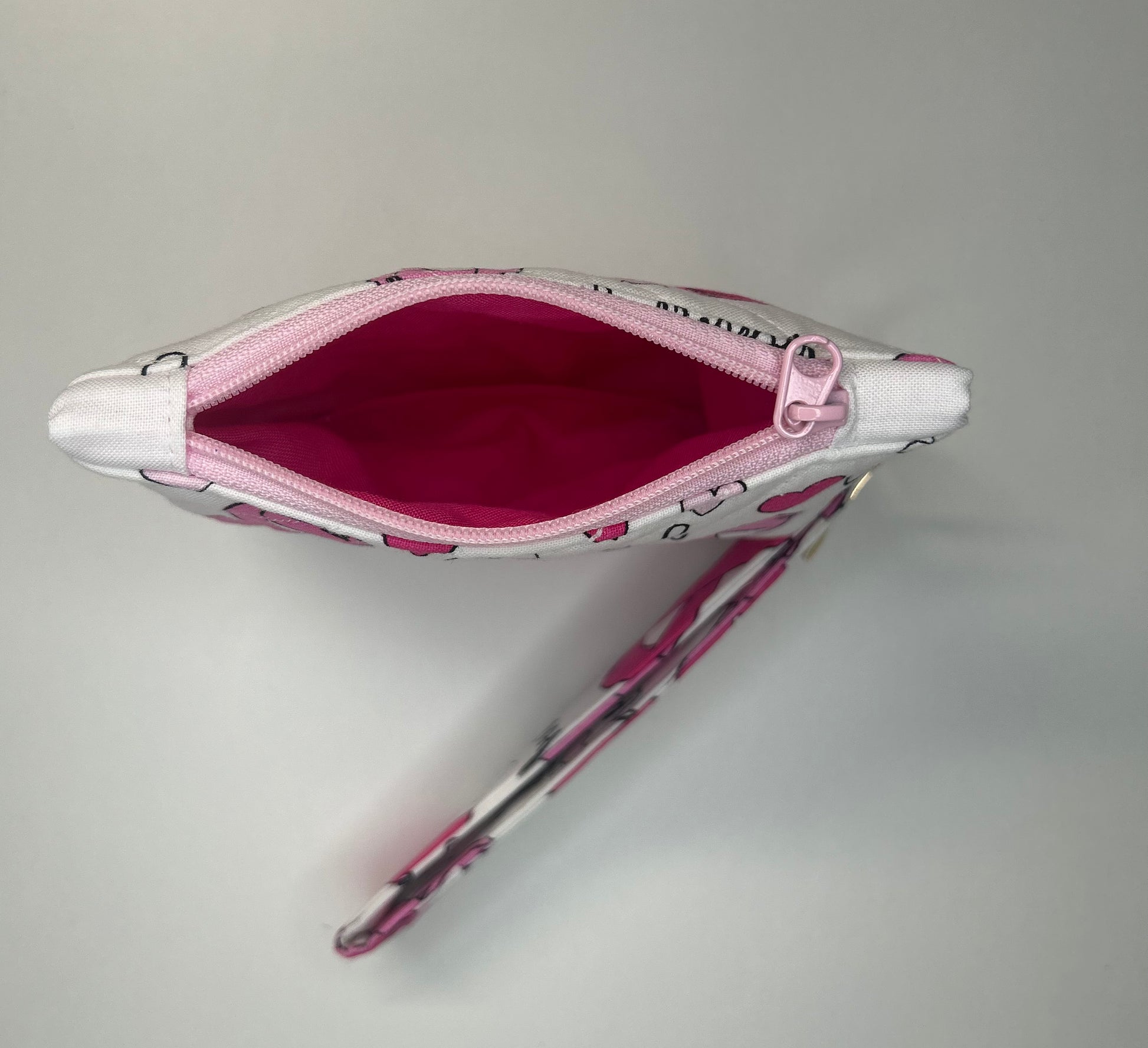 Handmade with love, each pouch features the iconic pink ribbon pattern β a meaningful reminder of courage, beauty, and resilience.